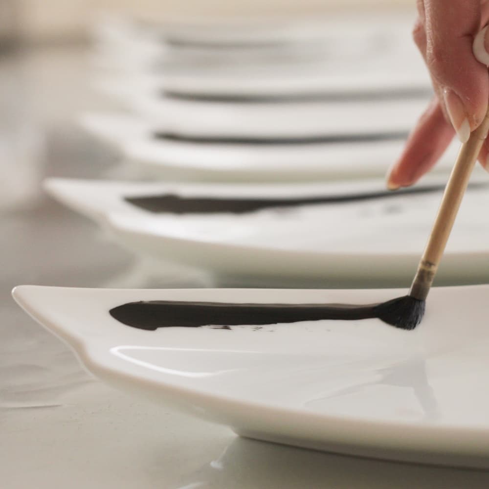 絵付け教室では、白い食器に絵付けをし、焼成して仕上げます。