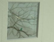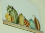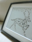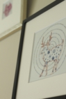 MACHIKOがデザイン、絵付けをした陶板を額装しています。