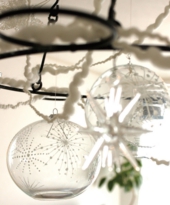 MACHIKO作品の風鈴にも使われているガラスのボールに絵付けをして、クリスマスオーナメントを制作します。