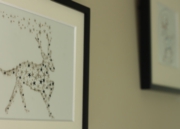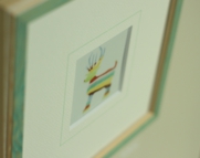 MACHIKOがデザイン、絵付けをした陶板を額装しています。