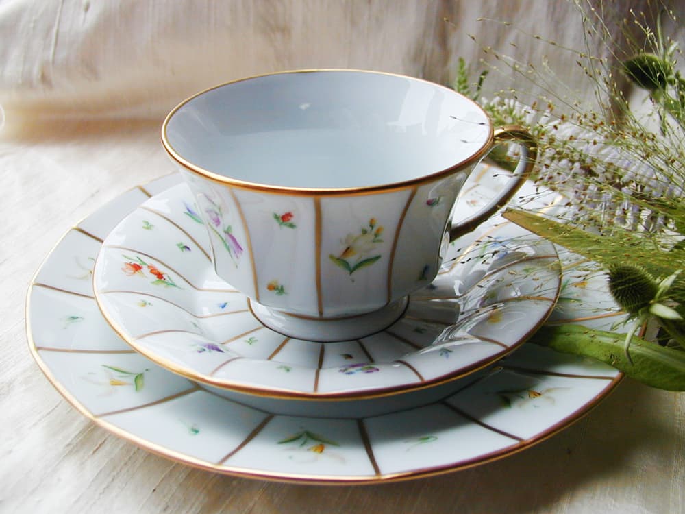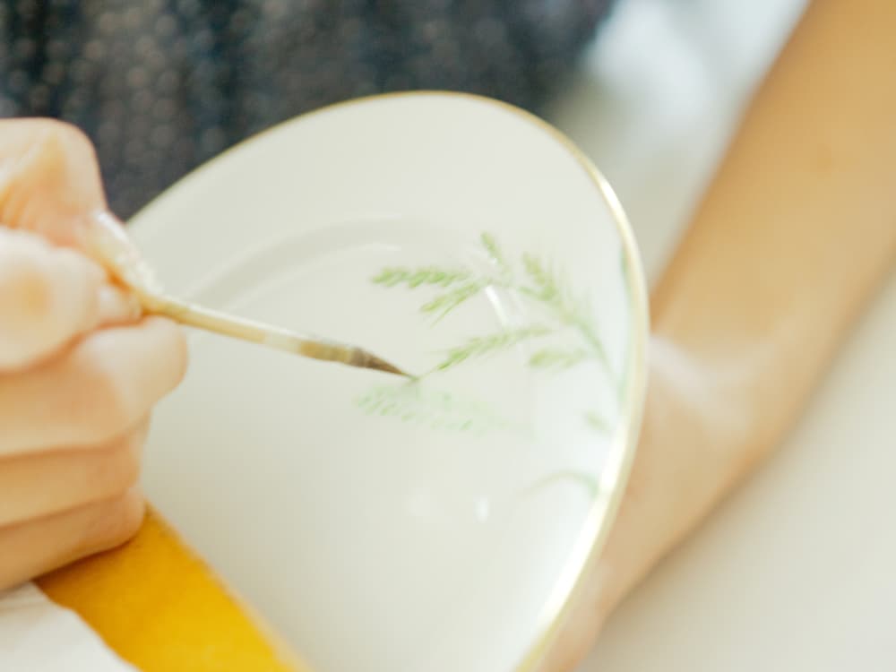 ポーセレンペインティングは、白い食器やカップなど陶磁器に、専用の絵の具と筆などで絵を描いて、窯で焼成し、実際使えるものとして完成するもので、絵付けともいいます。
